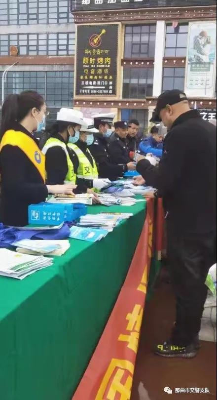 为切实做好国庆、中秋双节前夕道路交通安全管理工作,有效预防和减少道路交通事故的发生,2021年9月16日,那曲市公安局交警支队以“加强民族团结、构建平安那曲” 宣传活动为契机,组织民警深入市中央广场开展道路交通宣传活动,着力营造安全、畅通、有序的道路交通环境。活动中,民警通过发放《道路交通安全手册》、现场讲解等形式,向过往行人讲解道路交通安全常识,重点宣讲了不乱停乱放、开车不接打电话、开车系安全带、遵守交通信号灯等内容,教育引导广大群众自觉遵守交通法规,摒弃交通陋习,抵制违法行为,提升自我保护意识,养成安全参与道路交通活动的良好习惯。期间,累计发放宣传资料1000余份,取得了良好的效果。