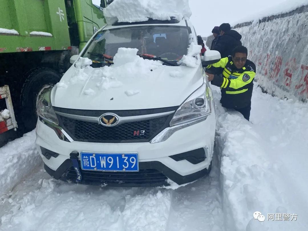 阿里地区公安处特警支队执勤民警在前往泉水湖公安检查站换勤返岗途中,陆续发现多台群众车辆受困于冰雪路面。全体特警队员立即毫不犹豫地投入到救援工作中,齐心协力帮助受困车辆成功脱险。